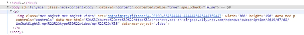 富文本编辑器里上传了本地视频之后,会默认给替换成一个img标签,如下: