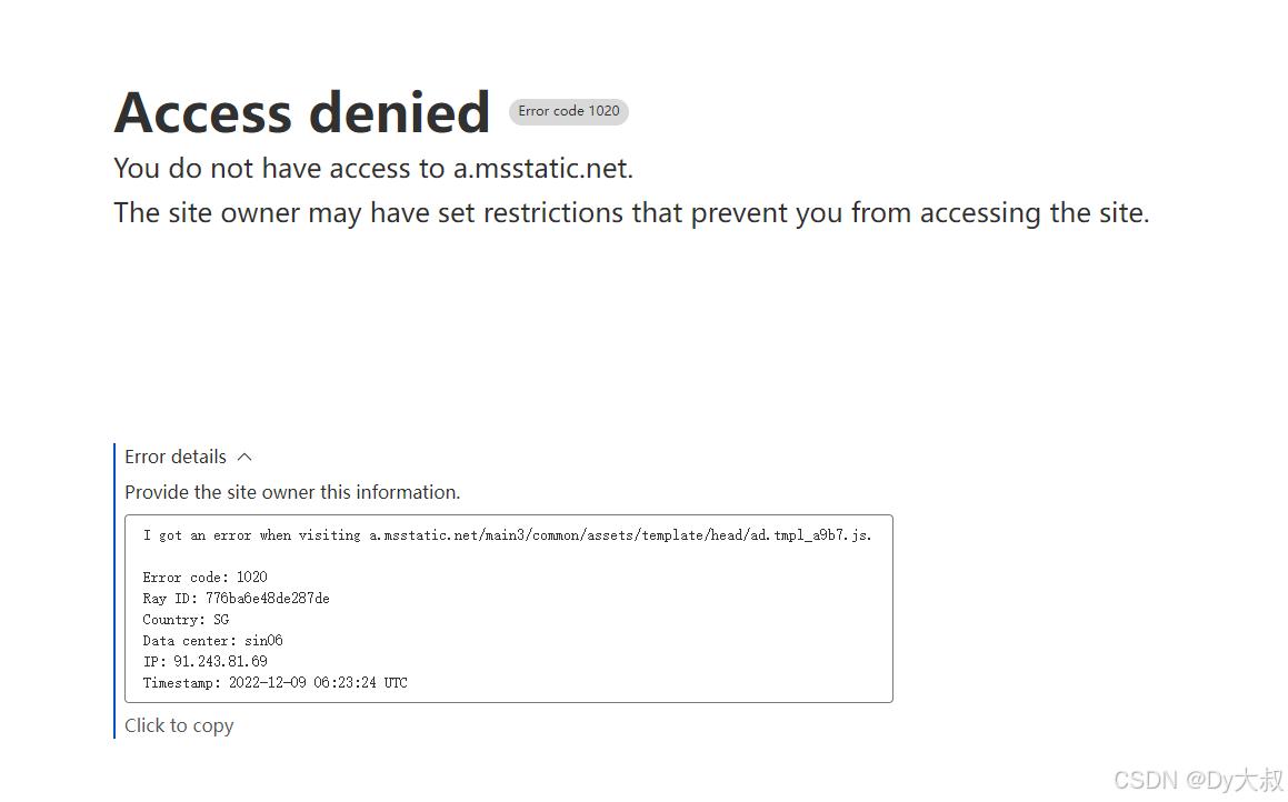 有趣的是,这段 JS 目前屏蔽了海外访问,我这里使用新加坡代理访问无果,国内正常访问,可见这段代码非常针对国内的用户: