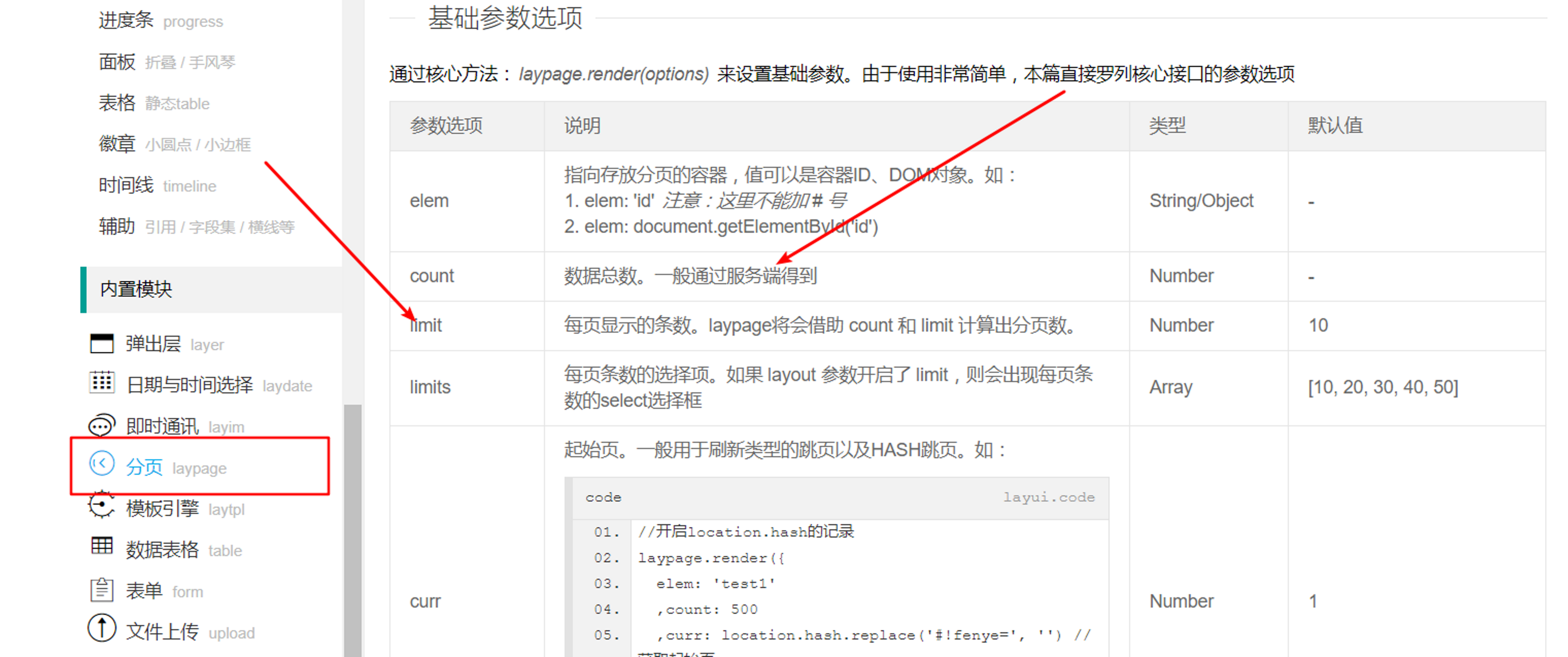 - 文档上并没有明确说明limit 怎样接收后端设置的值,limit的值可以通过get方式传递到后端
