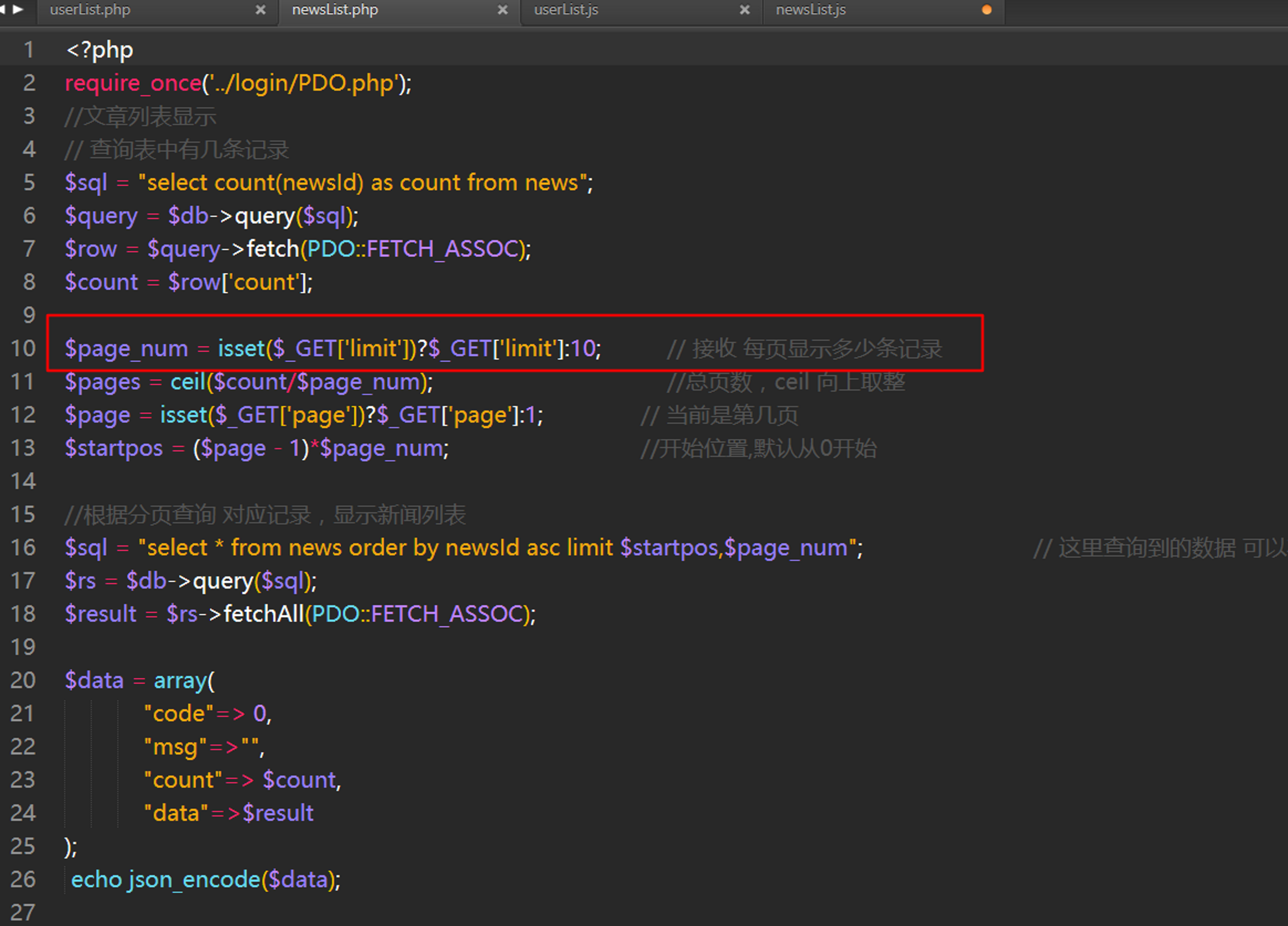 - 这样只需要在js文件 中改变 limit 的值,就可以控制每页显示多少条记录了。
