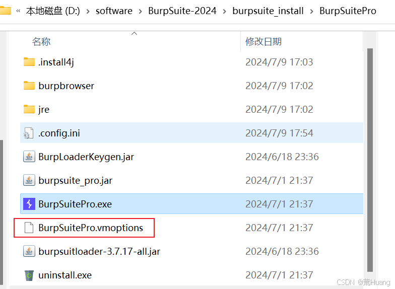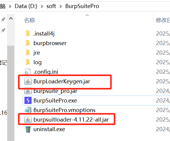其中 D:\software\BurpSuite-2024\burpsuite_install\BurpSuitePro 更换为你的burpsuite安装目录 (前后有两个需要更换为安装目录的地方,请务必注意)