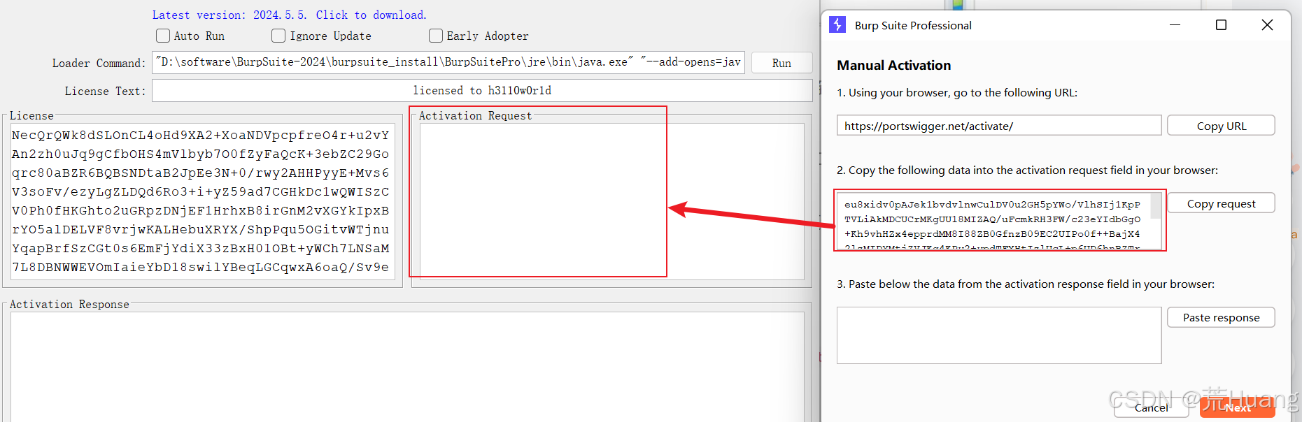 6.点击Copy Request将其复制粘贴到左侧窗口的Activation Request中后,自动生成Activation Response