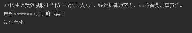 1 words_sensitive_list=['张三','V字仇杀队','杀'] 2 comments_list=['张三因生命受到威胁正当防卫导致过失杀人,经辩护律师努力,张三不需负刑事责任。','电影<V字仇杀队>从豆瓣下架了','娱乐至死'] 3 s='\n'.join(comments_list) 4 for i in words_sensitive_list: 5 if i in s: 6 x=len(i) 7 s=s.replace(i,'*'*x) 8 else: 9 print(s) 10 print(s)