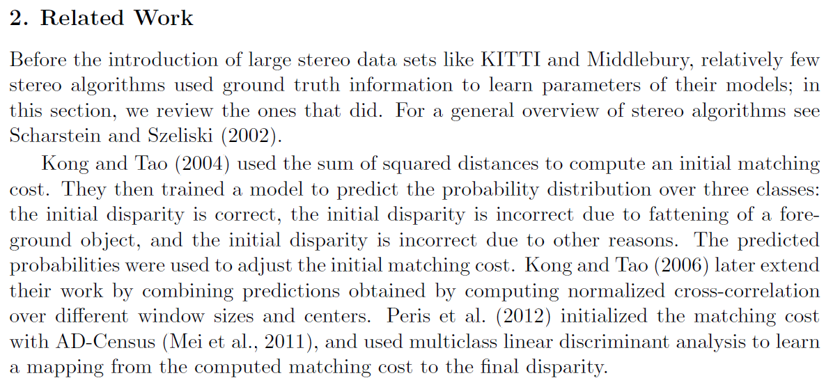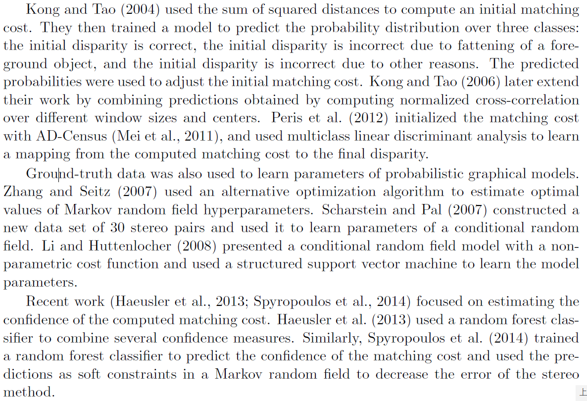 KITTI and Middlebury 数据集的准备,相关使用ground truth方式去学习模型参数的立体匹配算法。在这部分就是其他立体算法的概述。