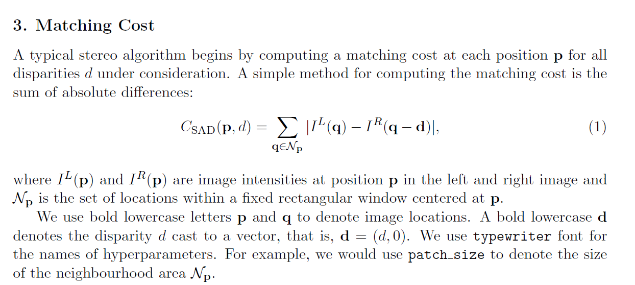 一种典型的立体视觉算法是从计算每个位置p的匹配代价开始的。