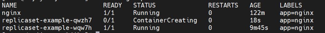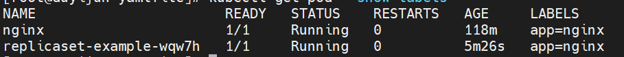 每个容器起来之后,都会有app:nginx标签 rs去匹配pod,标签必须和底下的容器标签一致