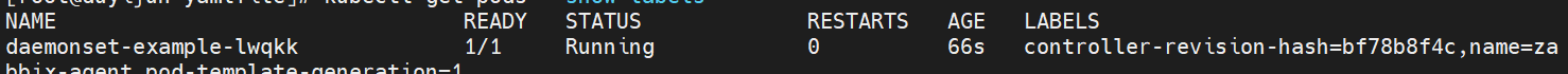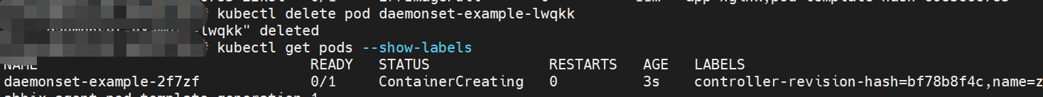 我们可以看到:删除后,DaemonSet控制器会自动再启动一个pod