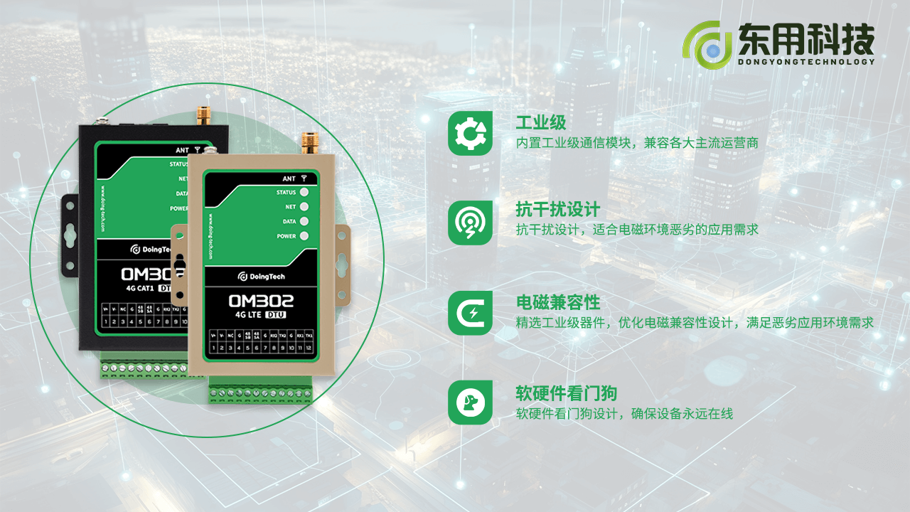 为了满足这一需求,东用科技推出了OM302工业级DTU产品。它不仅传输数据稳如老狗,还支持多种接口,可广泛应用于工业数据采集、民用电水表、阴保等很多场景。