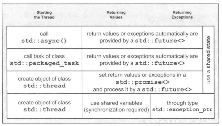 3、std::aysnc()会返回一个std::future object类型的返回值,在std::future object中,我们可以取得线程返回值或异常信息。此外,std::future object类型的特化与线程函数的返回值一致。形式如下: