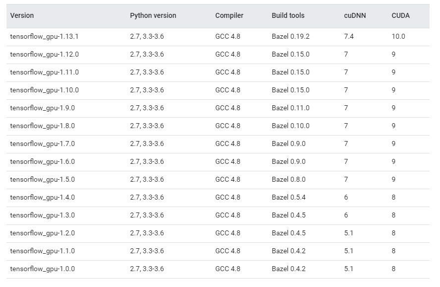 TensorFlow-GPU与Python、CUDA的版本对应问题