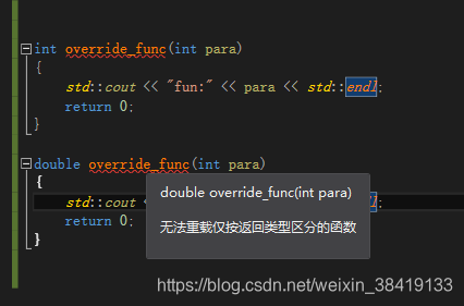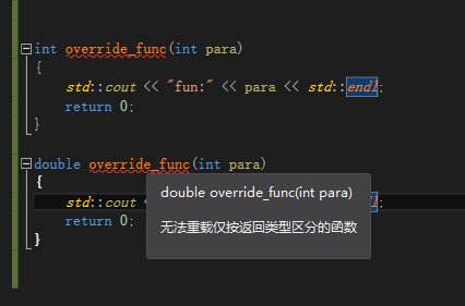 以下的这段代码是仅通过返回值的类型进行重载,但是可以知道这是错误的做法。
