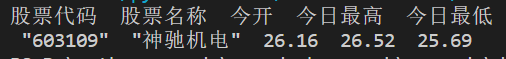 print("股票代码 股票名称 今开 今日最高 今日最低")