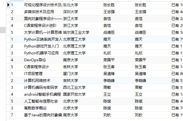 self.insertDB(str(count),cCourse,cCollege,cTeacher,cTeam,cCount,cProcess, cBrief)