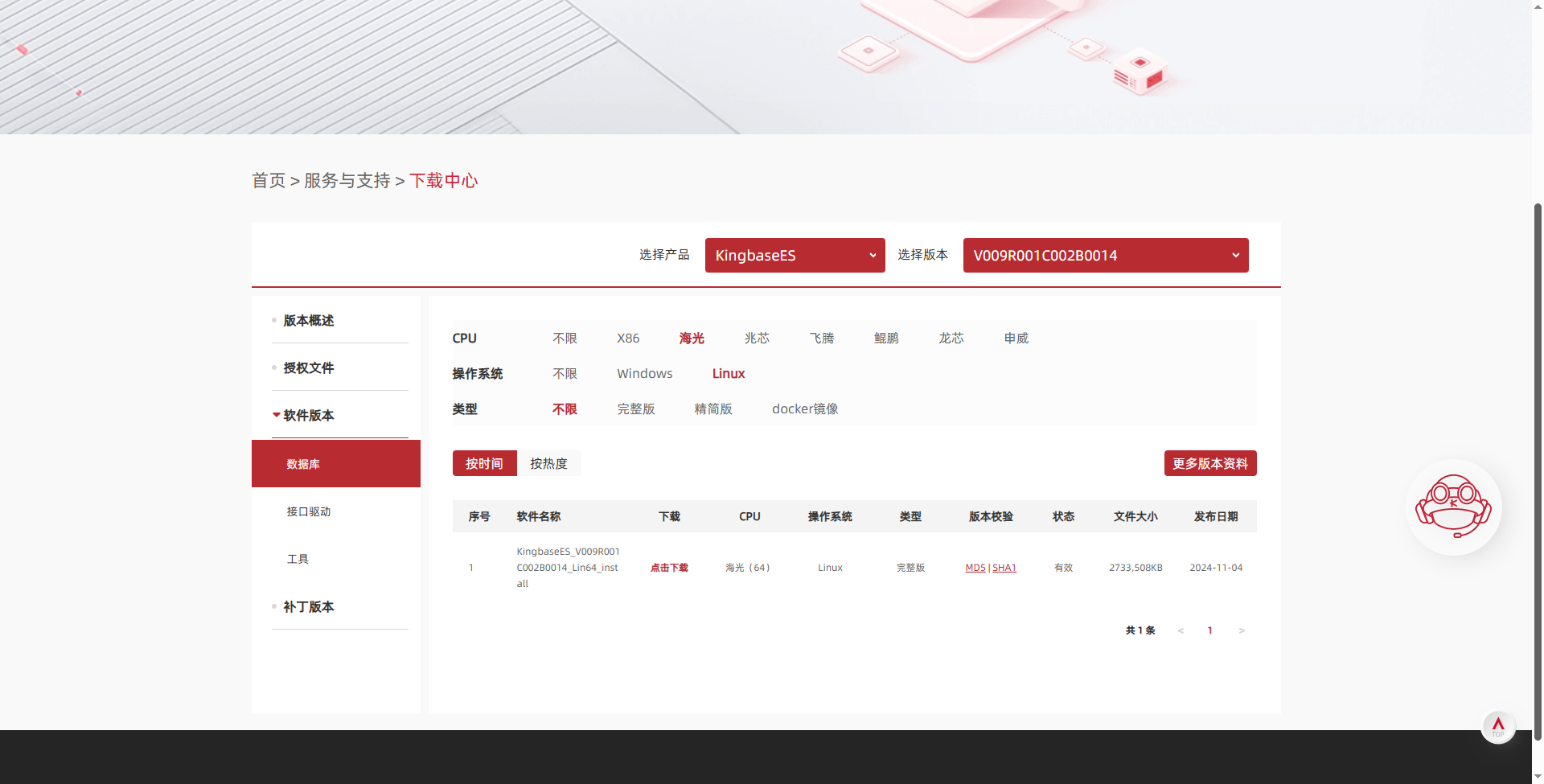 1、下载数据库和授权文件,官方地址:https://download.kingbase.com.cn/xzzx/index.htm