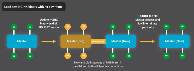 NGINX二进文件升级获得极佳的高可用性-你可以在线升级文件,而且不会丢失任何连接、服务也不会停机或中断。