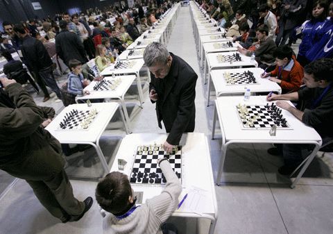 或许你听说过同时展示游戏,一个象棋大师同时对阵十二个棋手。