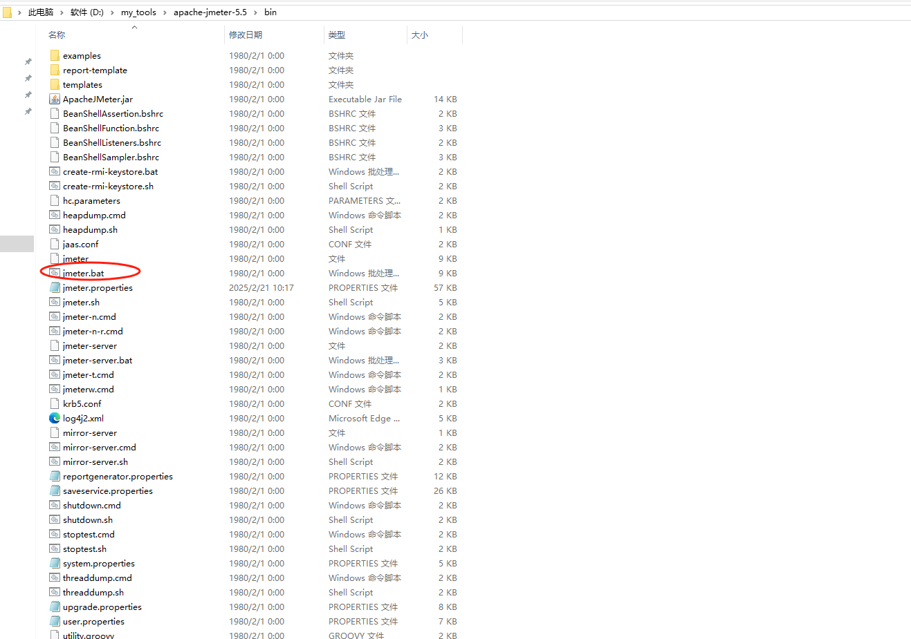 进入D:\my_tools\apache-jmeter-5.5\bin目录找到【jmeter.porperties】文件,将