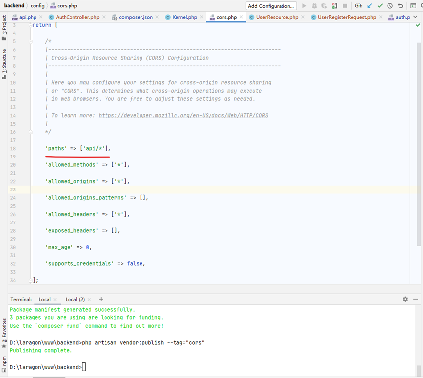 更多options参考 https://github.com/fruitcake/laravel-cors