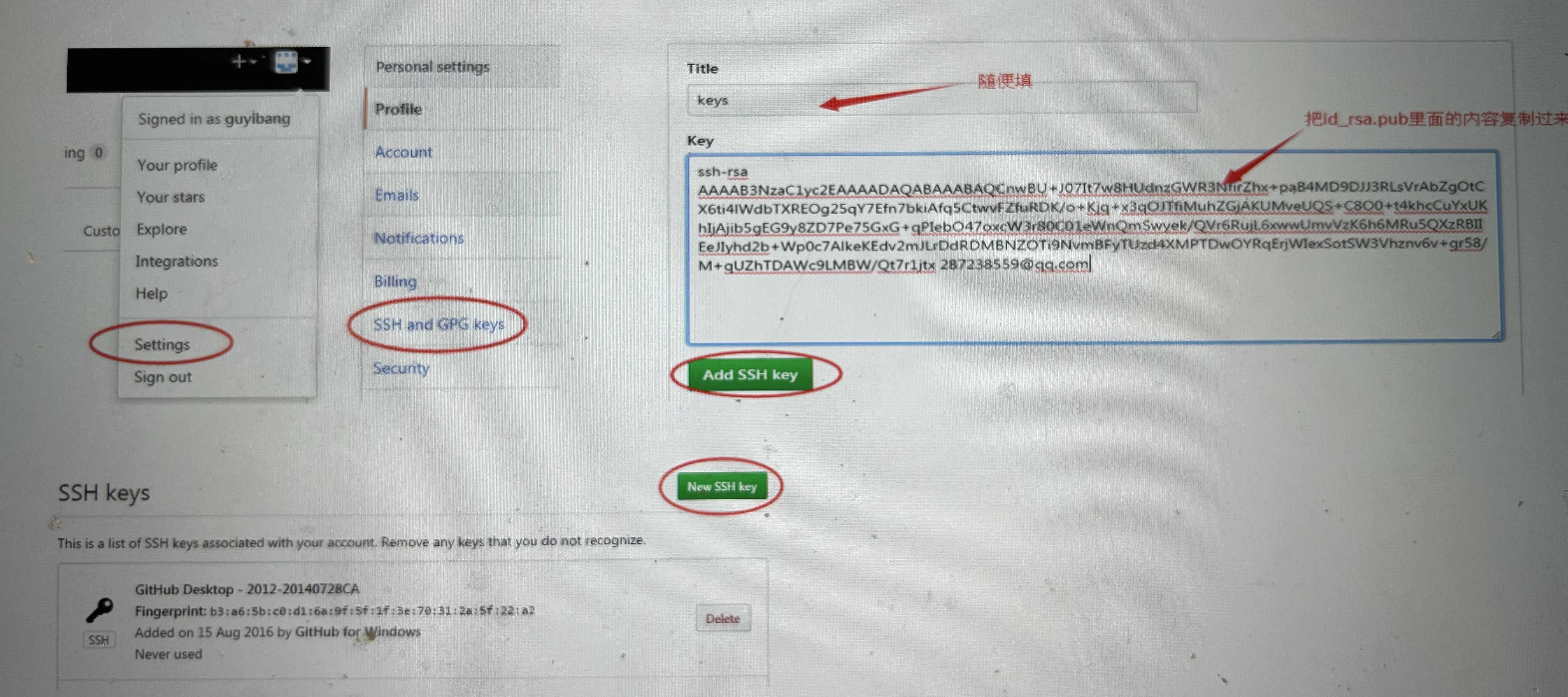 个人图像点击Settings,在Profile下点击SSH and GPG keys
