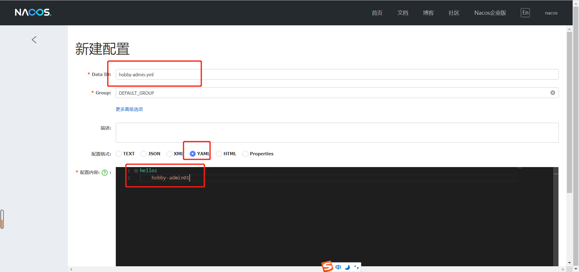 prefix默认为spring.application.name的值,也可以通过配置项spring.cloud.nacos.config.prefix来配置。spring.profiles.active即为当前环境对应的 profile,详情可以参考 Spring Boot文档。 注意:当spring.profiles.active为空时,对应的连接符-也将不存在,dataId 的拼接格式变成${prefix}.${file-extension}file-exetension为配置内容的数据格式,可以通过配置项spring.cloud.nacos.config.file-extension来配置。目前只支持properties和yaml类型。