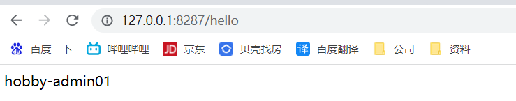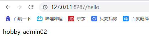2.4 启动hobby-admin,测试http://127.0.0.1:8287/hello,查看是否读取成功