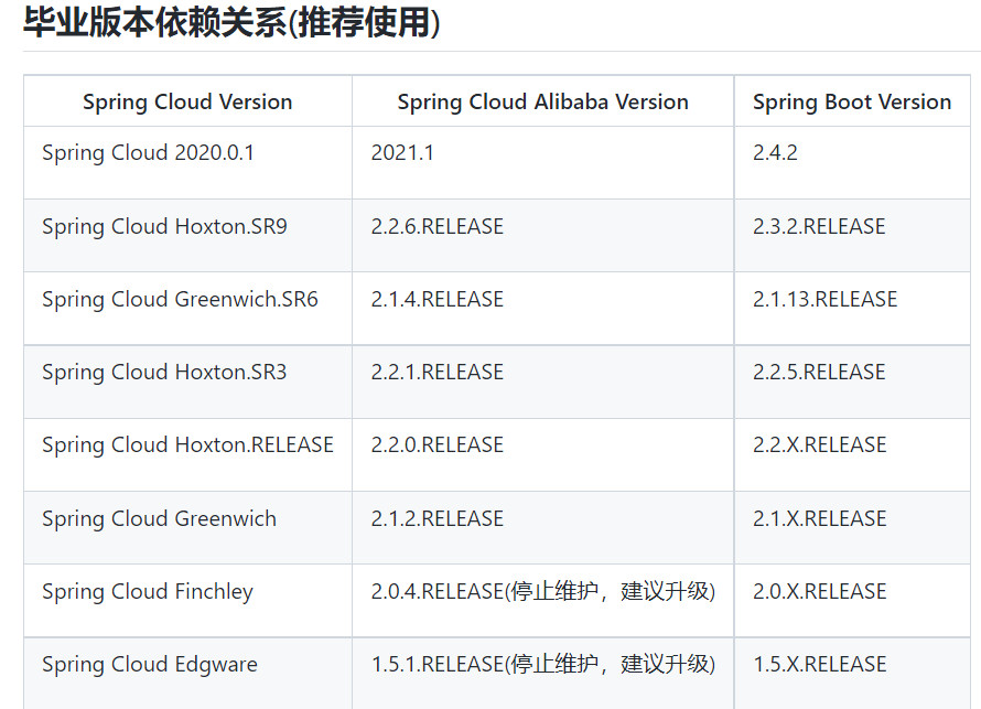具体可以参考这里:https://github.com/alibaba/spring-cloud-alibaba/wiki/版本说明