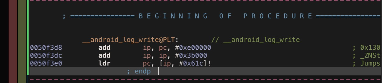 应该调用__android_log_write@PLT 而不是__android_log_write。