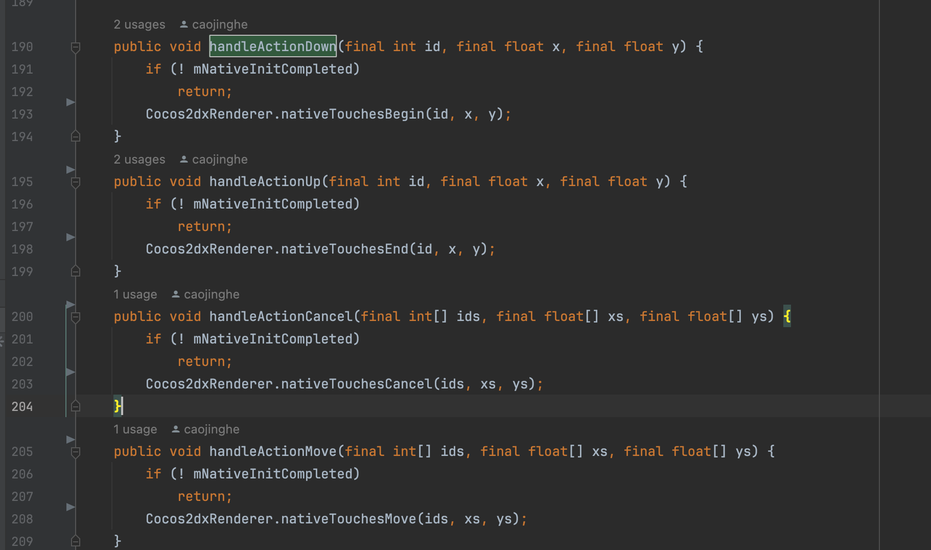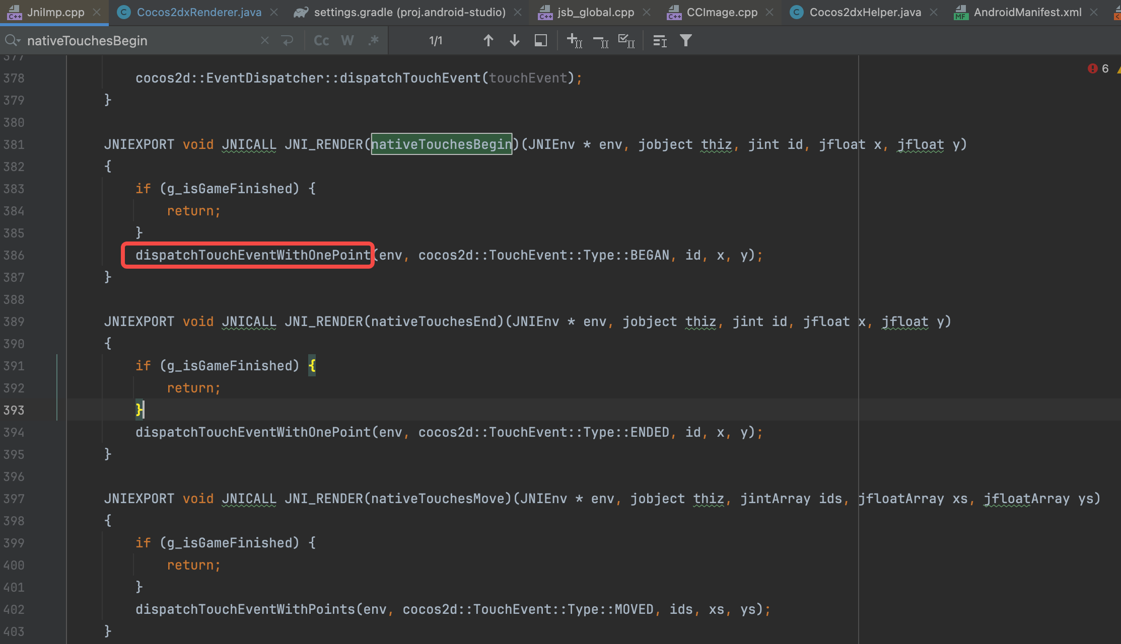 它们都将原始触摸点,转换为cocos2d::TouchEvent对象,然后调用cocos2d::EventDispatcher::dispatchTouchEvent方法派发事件