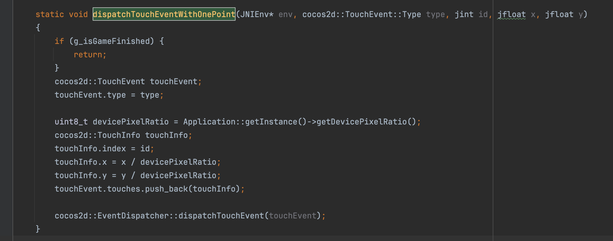 最终将原始触摸点,转换为touchEvent对象, 然后调用了cocos2d::EventDispatcher::dispatchTouchEvent
