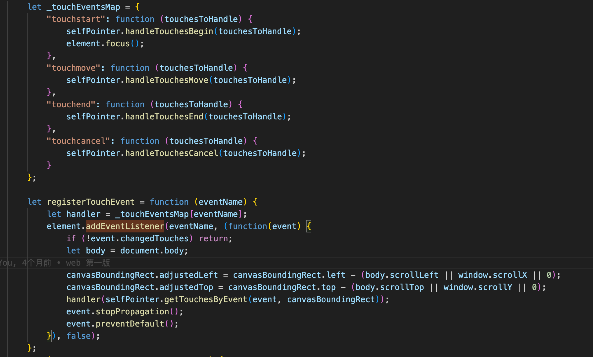 说明:这个tagert是cocos伪造的HTMLCanvasElement对象,其实是window.__canvas, 这个实现是为了和web版本事件逻辑一致