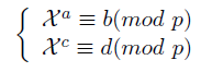 if(fpow(ans,a,P)==b&&fpow(ans,c,P)==d)