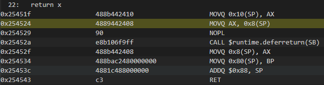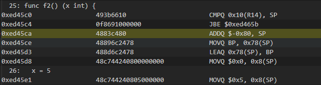 这个时候x的0x10(sp)=6,匿名变量0x8(sp)还是等于5