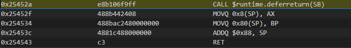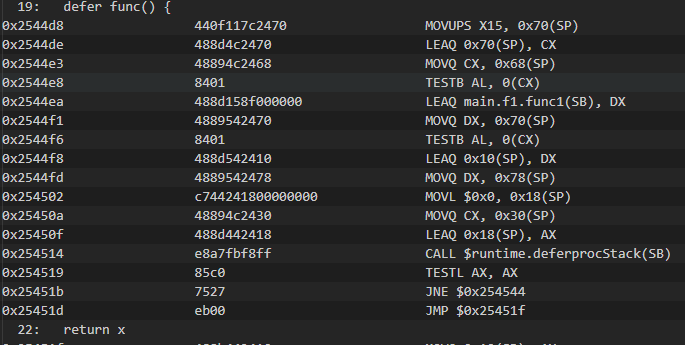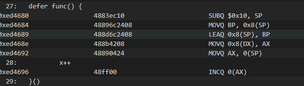 这里就是先赋值,把0x10中的值给了0x8,然后执行到call defer处 进入defer func