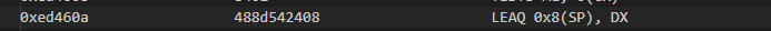 汇编中的返回值都是放在EAX中的, 但是可以看见AX的值来自0x8(DX),我其实也不想跟的太深入,因为看不到内存和栈的信息,想看看0x8(DX)的值都看不了,