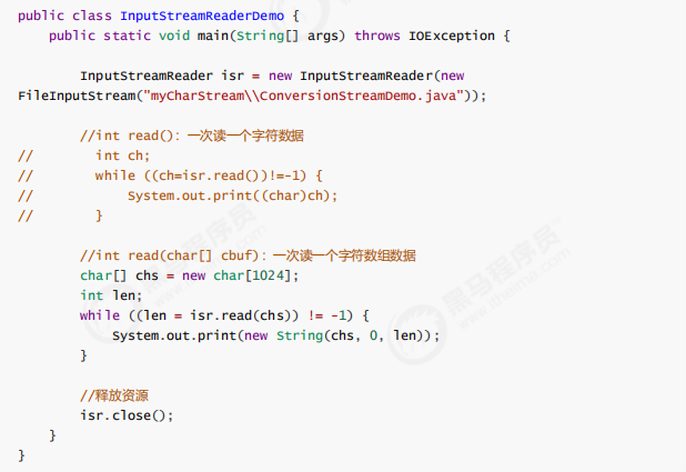 6字符流读数据的2种方式【应用】 方法名 说明 int read() 一次读一个字符数据 int read(char[] cbuf) 一次读一个字符数组数据
