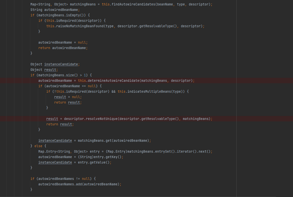 先会判断beans个数是不是大于1,如果大于1继续往下