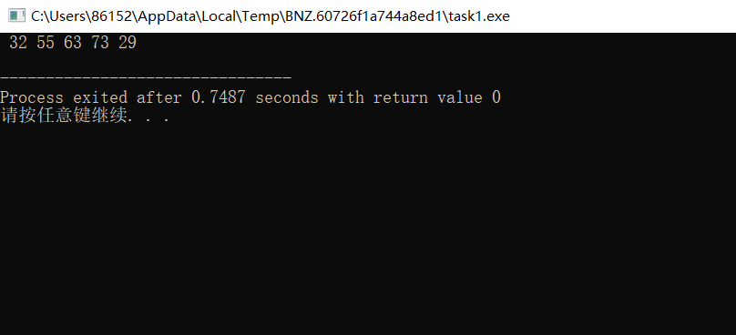 #include <stdio.h> #include <stdlib.h> #include <time.h> #define N 5 int main() { int x, n; srand(time(0)); // 以当前系统时间作为随机种子 for(n=1; n<=N; n++) { x = rand() % 100; // 生成一个0~99之间的随机整数 printf("%3d", x); } printf("\n"); return 0; }