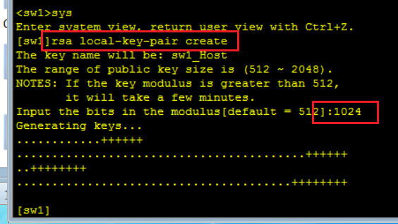 [SW1] stelnet server enable # 使能SSH服务器端的STelnet服务,客户端要以Stelnet方式与SSH服务器建立连接,那么SSH服务器端的STelnet服务功能必须使能。 server关键字表示服务端