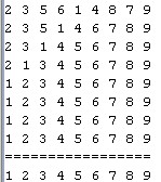 public class Test { public static void main(String[] args) { int[] a = { 2, 5, 3, 9, 6, 1, 4, 8, 7 }; bubble_sort(a);