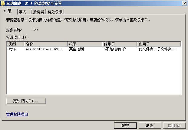 c.设置操作系统中的关键目录(system32、hosts、Program Files、Perflogs)的权限为最优状态,即仅允许管理员用户进行读取及运行。