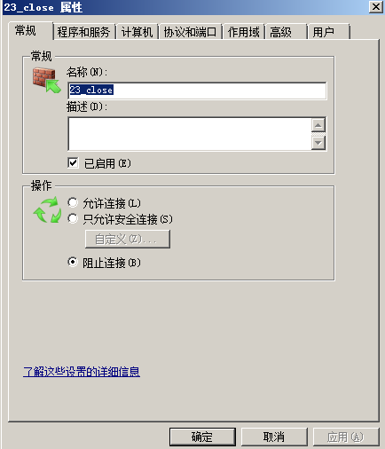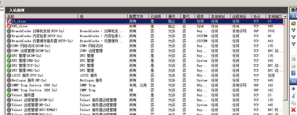 windows高级防火墙-->入站规则-->新建规则--端口--TCP&特定本地端口23-->阻止连接-->下一步-->完成