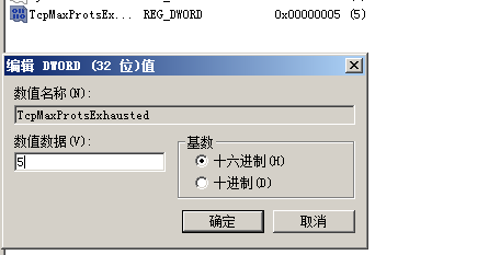 HKEY_LOCAL_MACHINE\SYSTEM\CurrentControlSet\Services\Tcpip\Parameters 下,值名称为TcpMaxPortsExhausted,推荐值为5