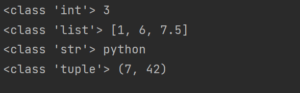 r1 = eval('1 + 2') print(type(r1), r1) r2 = eval('[1, 6, 7.5]') print(type(r2), r2) r3 = eval('"python"') print(type(r3), r3) r4 = eval('7, 42') print(type(r4), r4)