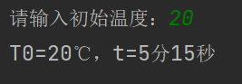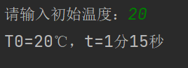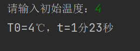 Tw = 100 # 水沸腾的温度 Ty = 70 # 蛋黄中蛋白质凝结的临界温度 from math import * # 鸡蛋的参数 p = 1.038 # 鸡蛋的密度 c = 3.7 # 比热容 K = 5.4*(10**(-3)) # 热导率 M = 67 # 大鸡蛋质量 T0 = int(input("请输入初始温度:")) m = M**(2/3)*c*(p**1/3) n = K*(pi**2)*((4*pi/3)**2/3) q = log1p(0.76*((T0-Tw)/(Ty-Tw))) t = m/n*q t1 = int(t/60) t2 = int(t-(t1*60))print(f'T0={T0}℃,t={t1}分{t2}秒')