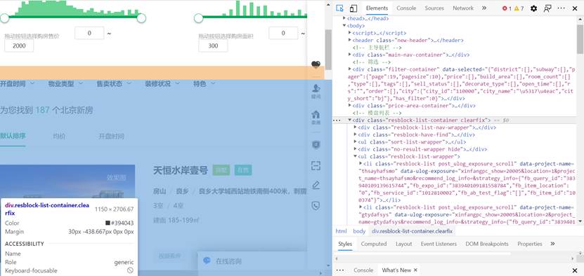 作业1:通过爬虫爬取链家的新房数据,并进行预处理。