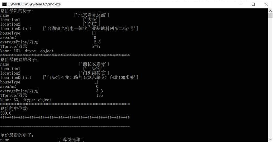 - 最后是spider.py,我将新房页面19页的数据都爬取下来,因为要从其中最贵和最便宜的等待;由于要进行之后的数据分析,所以这里我尽量将面积、总价和单价作为仅有数字的字符串保存而非列表: