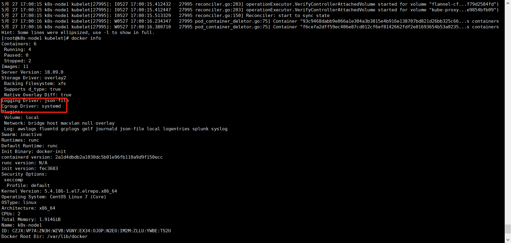 默认的k8s的cgroup driver是 systemd,而docker的cgroup driver是cgroups