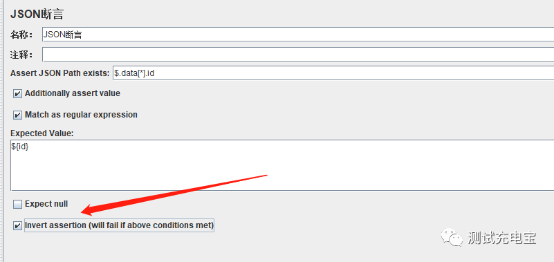 通过响应断言进行断言预期,只需要判断列表数据中出现id,配置如下