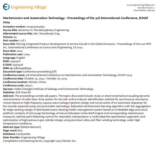 机电一体化与智能交通工程国际学术会议(ICMITE)每年10月举办一届,目前已成功举办三届(前三届曾用名: 机电一体化与自动化技术国际学术会议ICMAT),会议论文集已连续三年被EI收录。ICMITE 2025将围绕“机电一体化与智能交通工程”相关领域最新的研究热点、核心技术与发展态势展开讨论,旨在为国内外高等院校、科学研究所、企事业单位的专家学者以及工程师等提供一个分享专业经验和展示研究成果的高端学术交流平台,推动该领域理论、技术在高校和企业的发展和应用。会议通过主题演讲、口头汇报和海报展示等形式,传递最前沿科技进展和成果,促进技术的交流和思想的碰撞,推动学科领域的创新与融合发展;同时,本届会议征集的所有稿件将以论文集的形式出版,经会议录用的文章将出版在ICMITE 2025会议论文集,并提交EI检索。