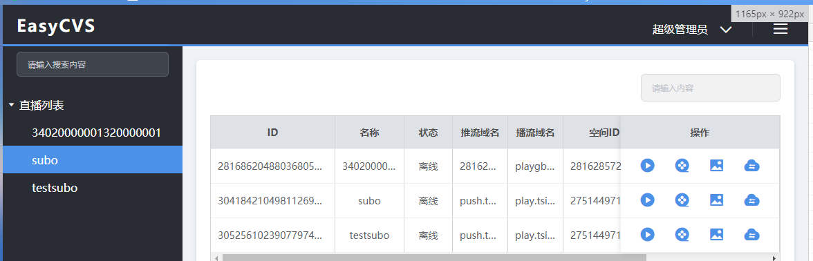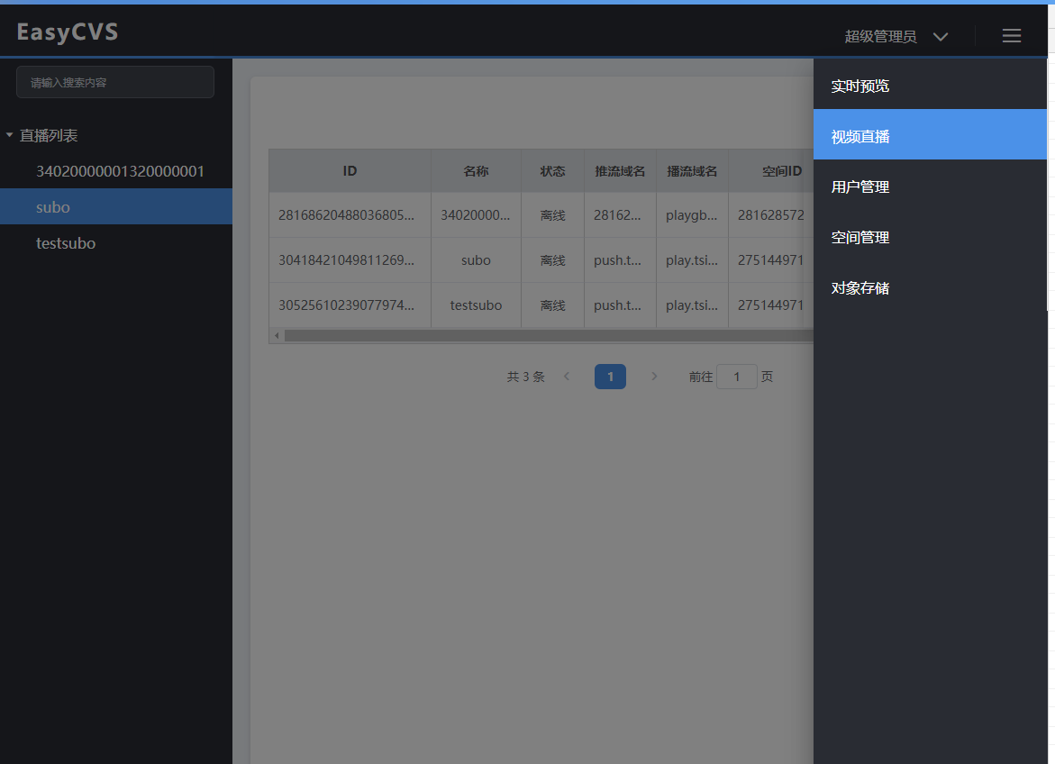 根据EasyCVR的编译和开发逻辑,我们又开发了EasyCVS管理平台。初期EasyCVS开发时,其顶部菜单栏在页面宽度较小的情况下,由于宽度不够,需要隐藏,但此时没法进行路由切换,这点还需要进一步优化。